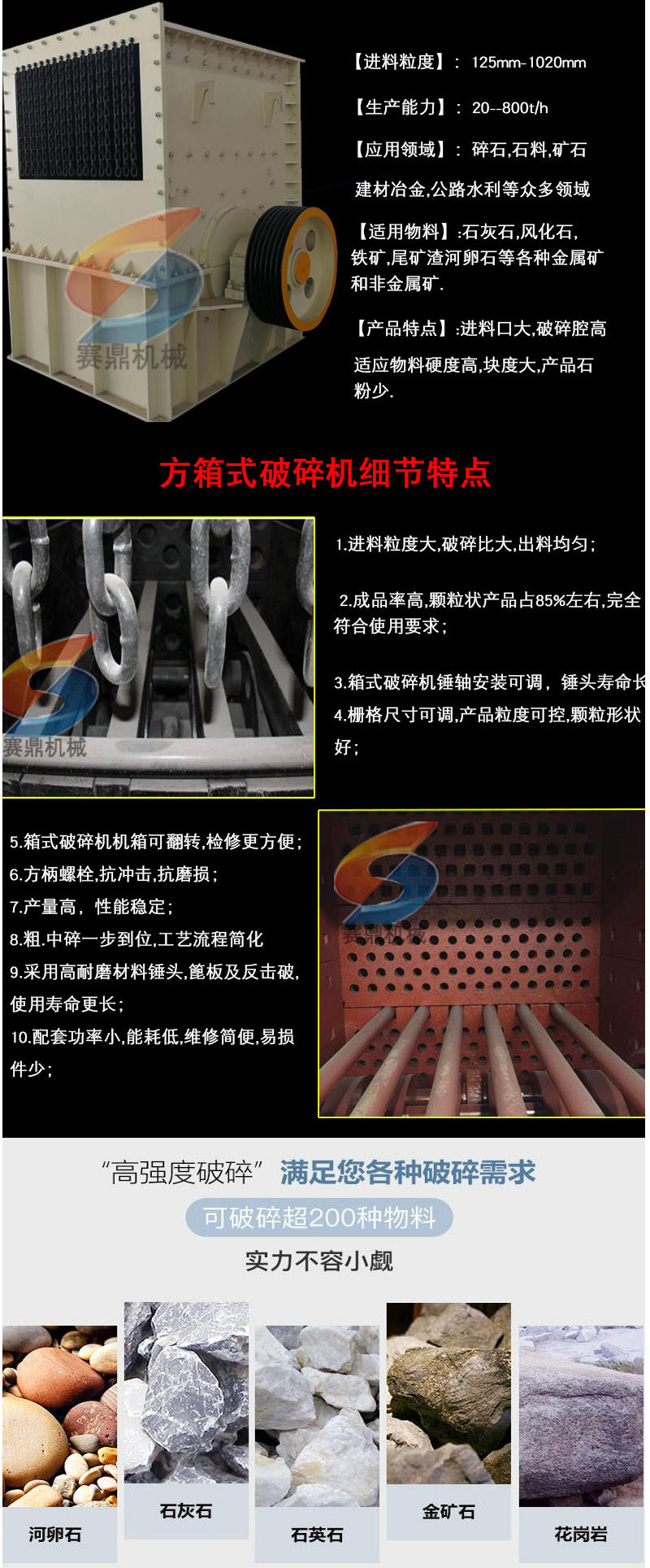 3.箱式破碎機錘軸安裝可調(diào),錘頭壽命長。